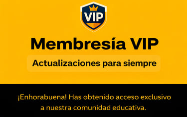 Membresía VIP la cual te hace miembro de nuestra comunidad y te da derecho a recibir actualizaciones y bonos sin ningún costo adicional.